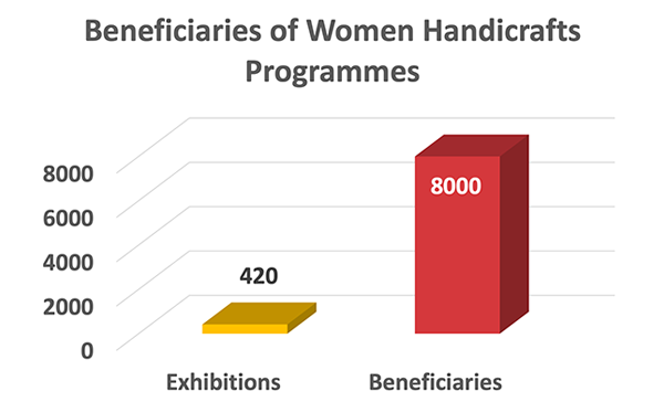 PES has been able to conduct these programmes with Public and Private partnerships, although most of these programmes were done in collaboration with Ministry of Textiles through their Ambedkar Hastship Vikas Yojana (AHVY) Scheme. Over the last decade PES has been able to conduct 410 exhibitions to showcase and market the products of the women artists and artisans